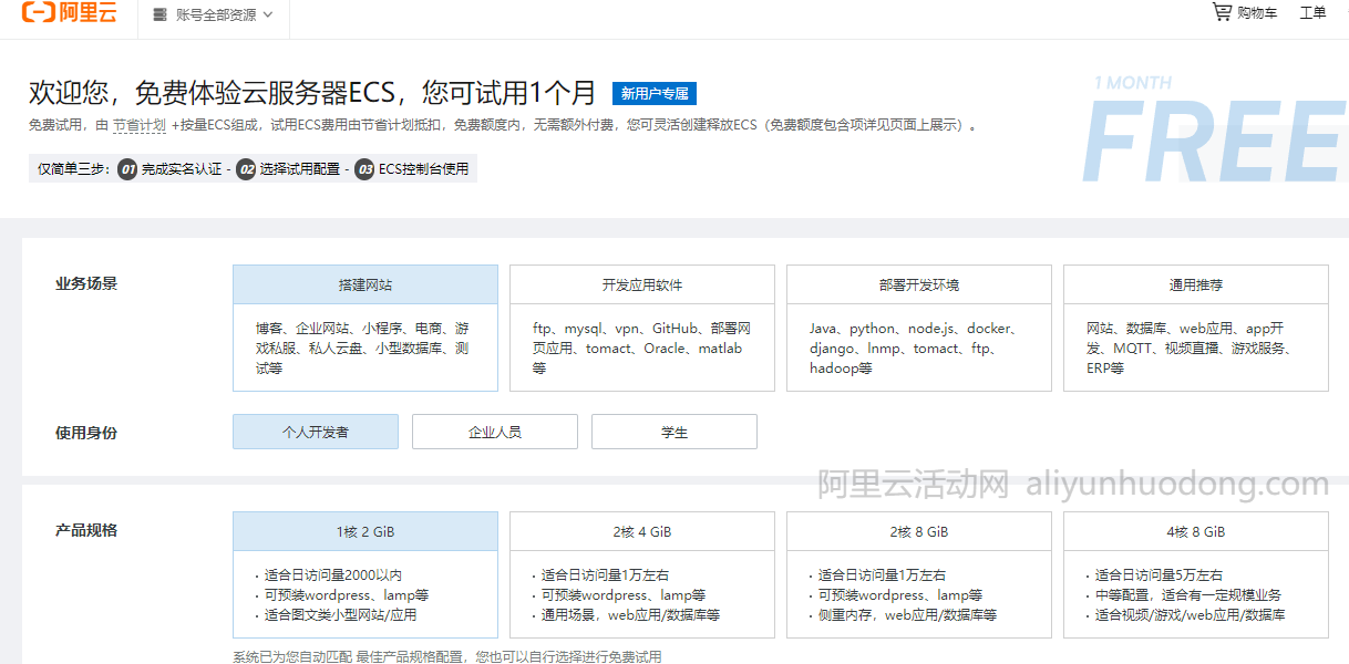 ,试用成本分析用户可灵活创建释放ECS。个月申请阿里云免费云服务器仅简单三步:①.完成实名认证-②.选择试用配置-③.ECS控制台使用。阿里